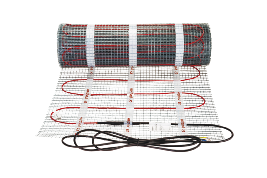 Тонкий нагревательный кабель, уложенный «змейкой» на сетке-основе с клеевым слоем