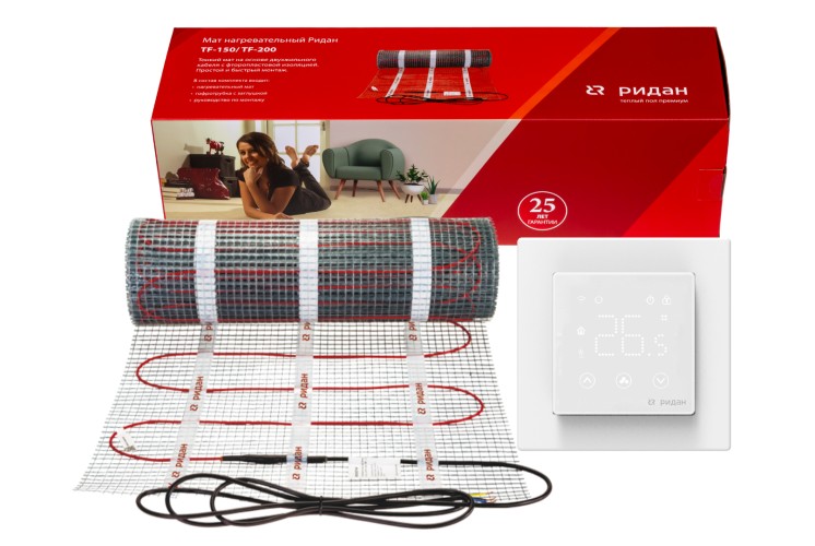 Ridan 21RT1094R — Розничный комплект для теплого пола: нагревательный мат Ridan TF-200 3,5 м² с терморегулятором Ridan Clever (белый)